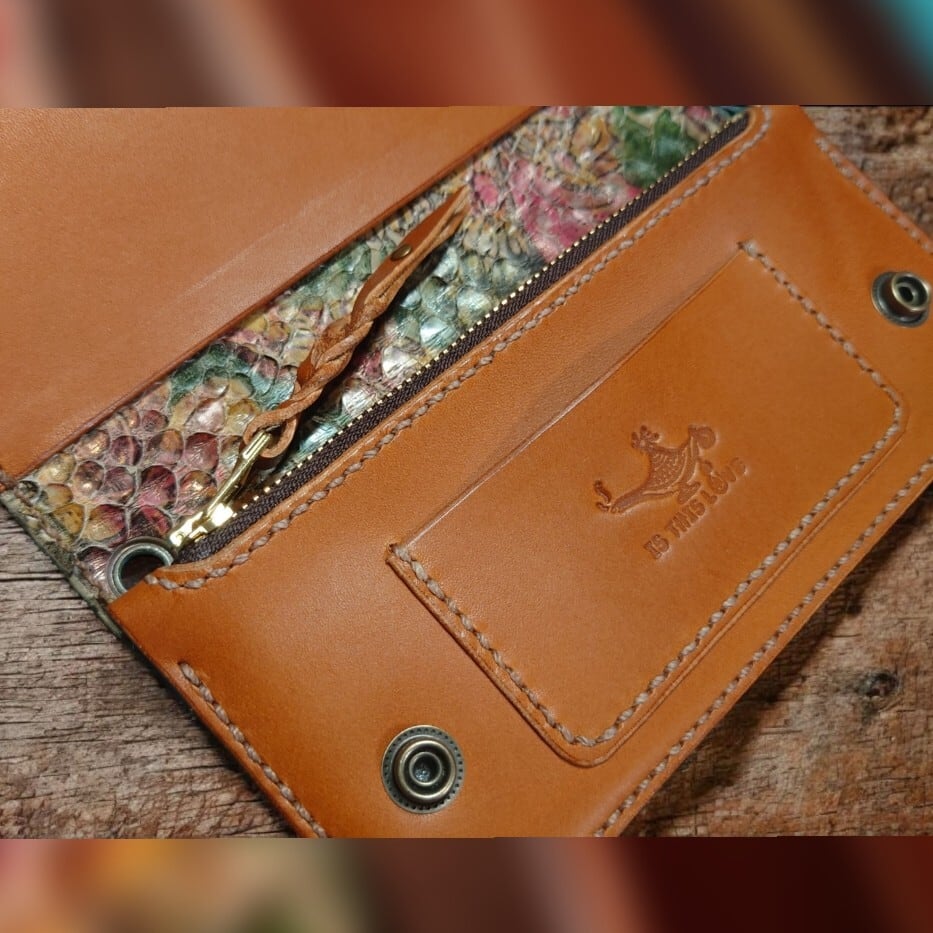 ★茶&キャメル栃木レザー、中張りはパイソン本革(花プリント)