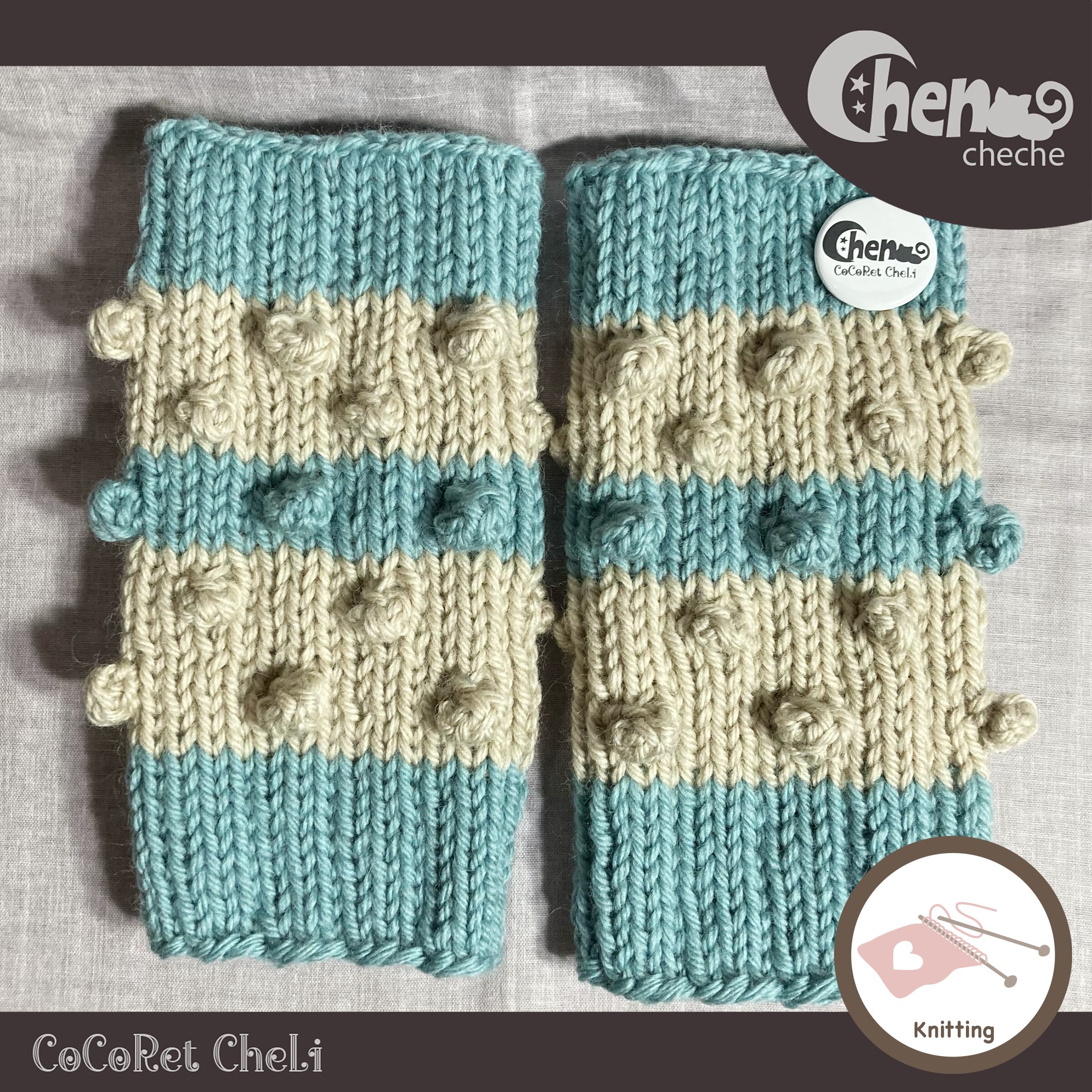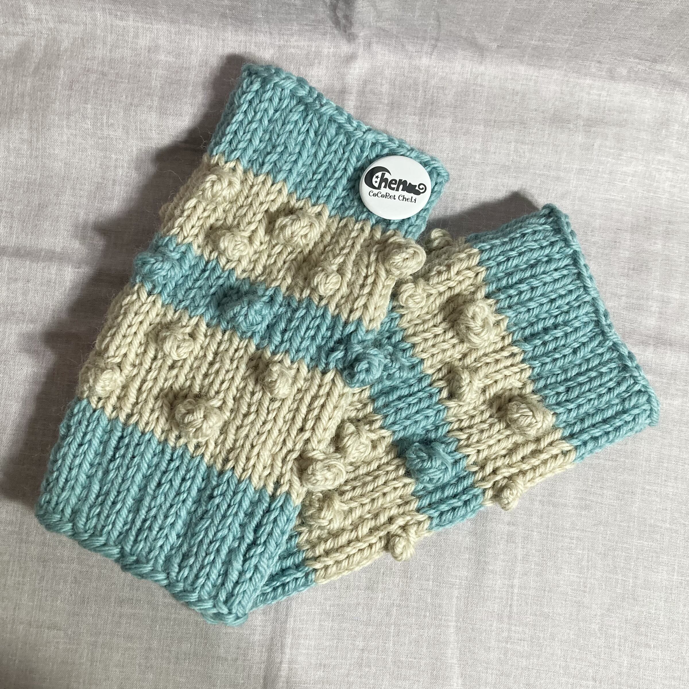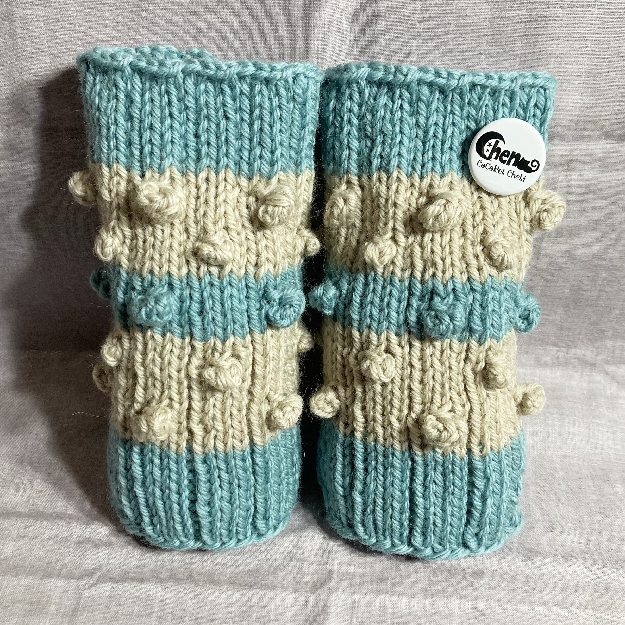 玉編みをたくさんあしらったレッグウォーマーです