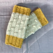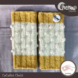 玉編みをたくさんあしらったレッグウォーマーです
