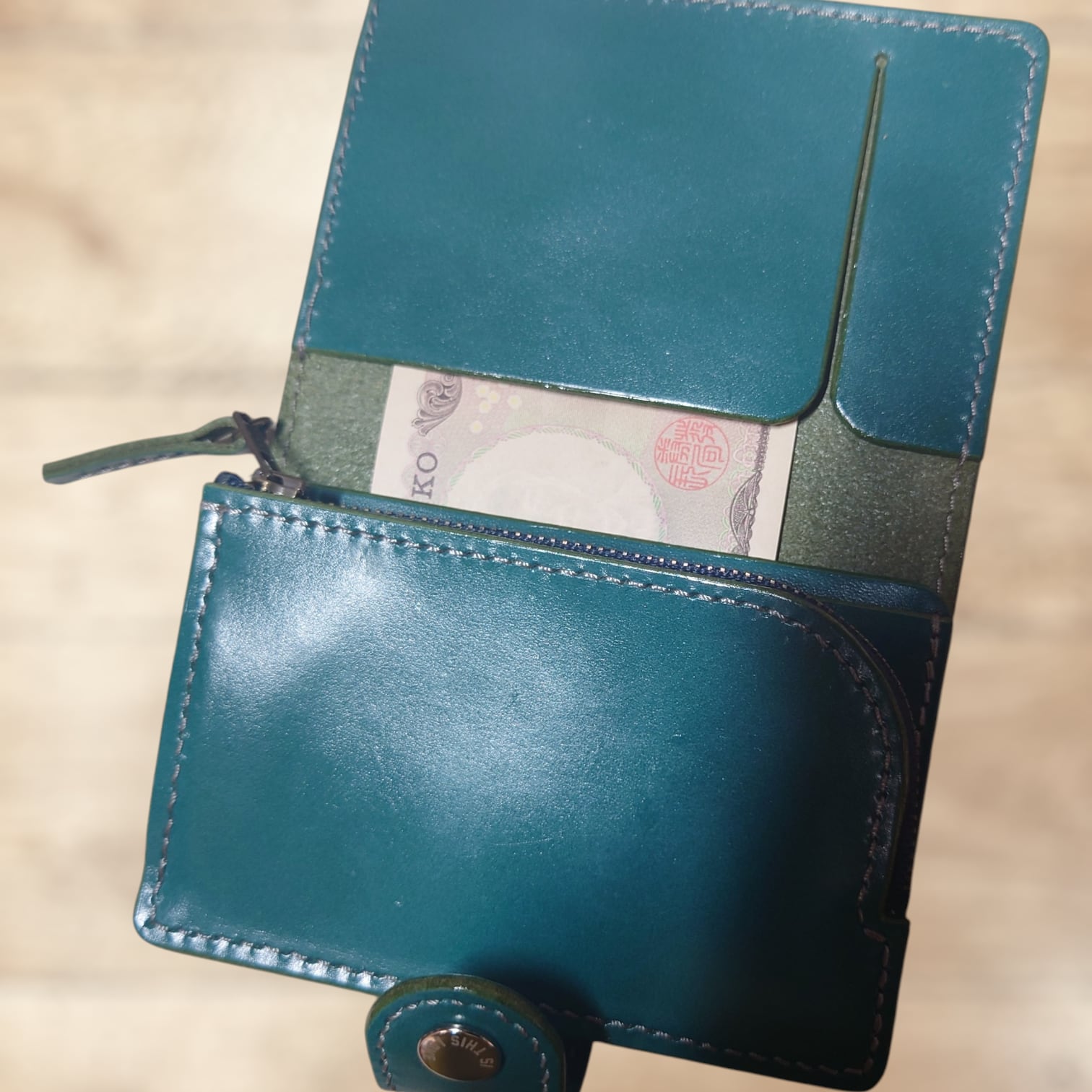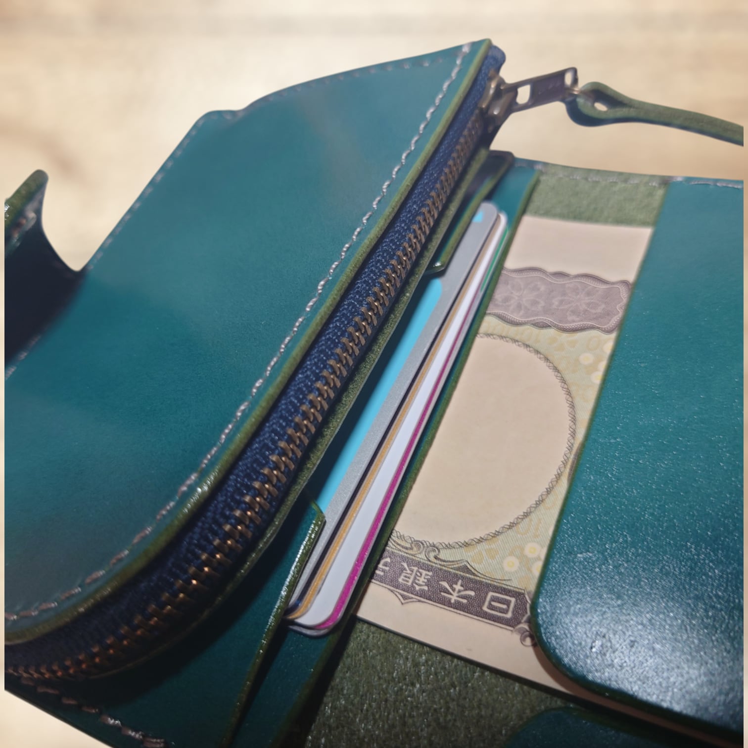 初めは少し堅いと感じるかもしれませんが、そこは革の良さで使うたびに柔らかく馴染んできます(^o^)